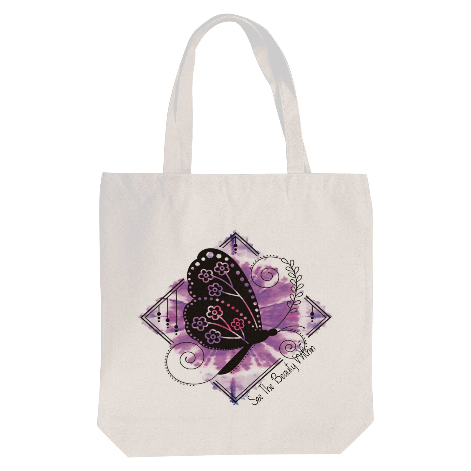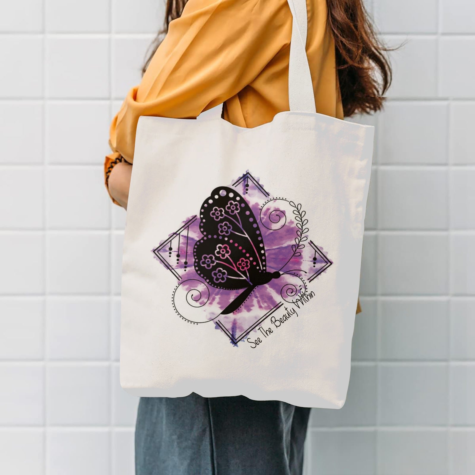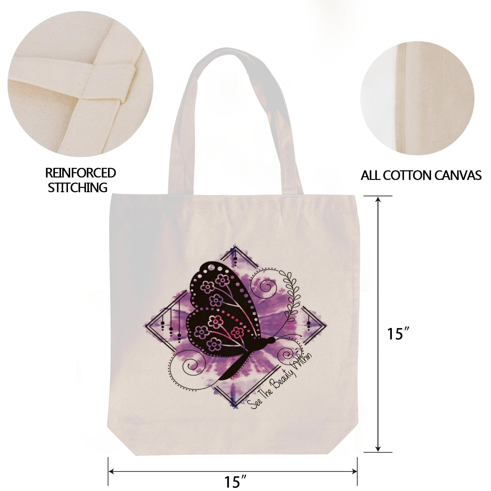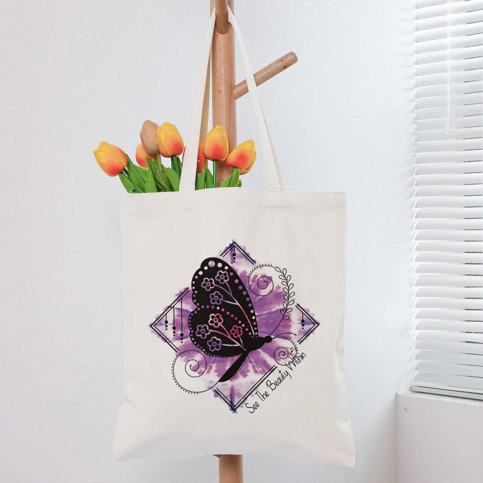 Canvas Tote Bag Purple Butterfly See Beauty Within Cotton Tote Bag (One Side Printing)