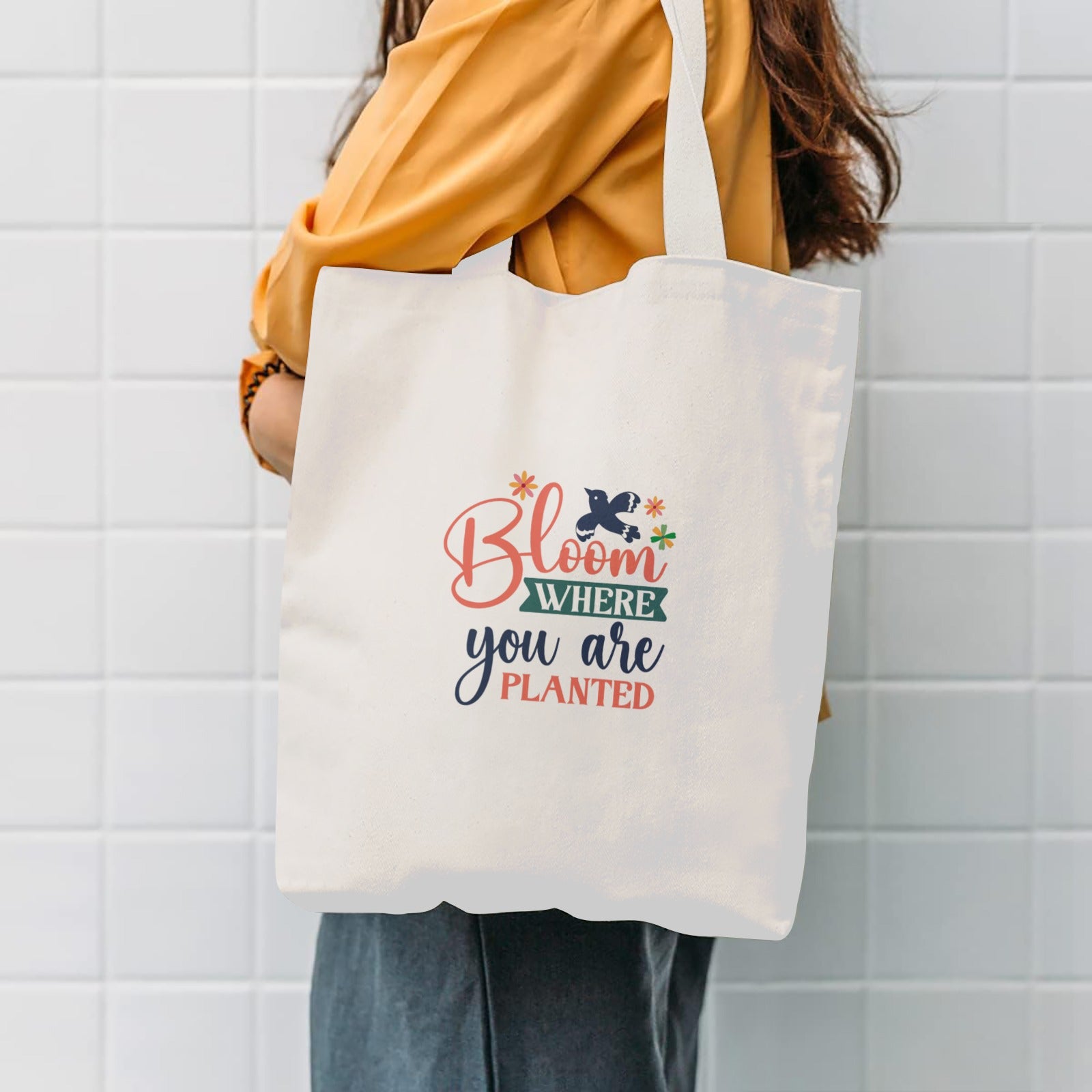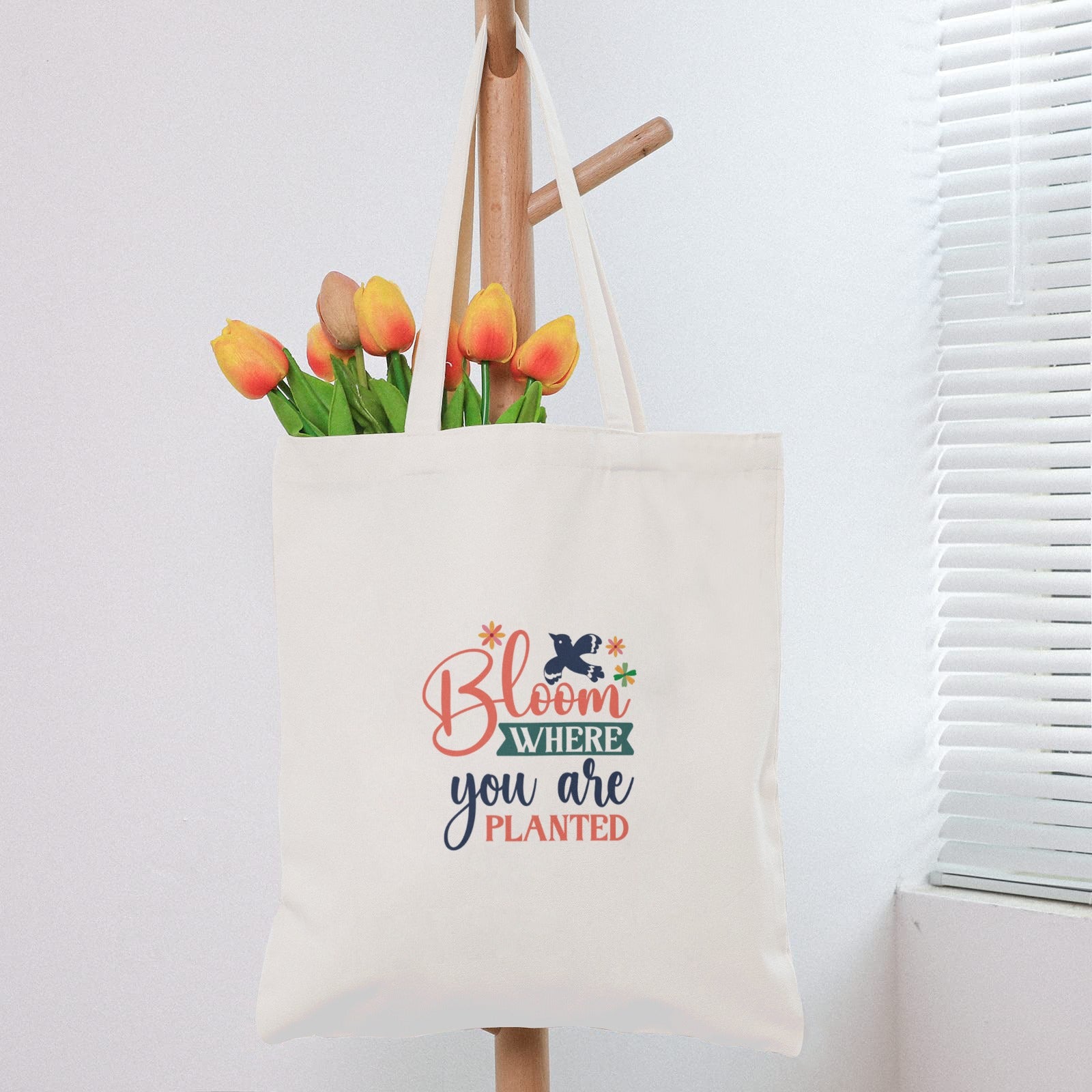 Flowers Bloom where you a re planted canvas bag Cotton Tote Bag (One Side Printing)