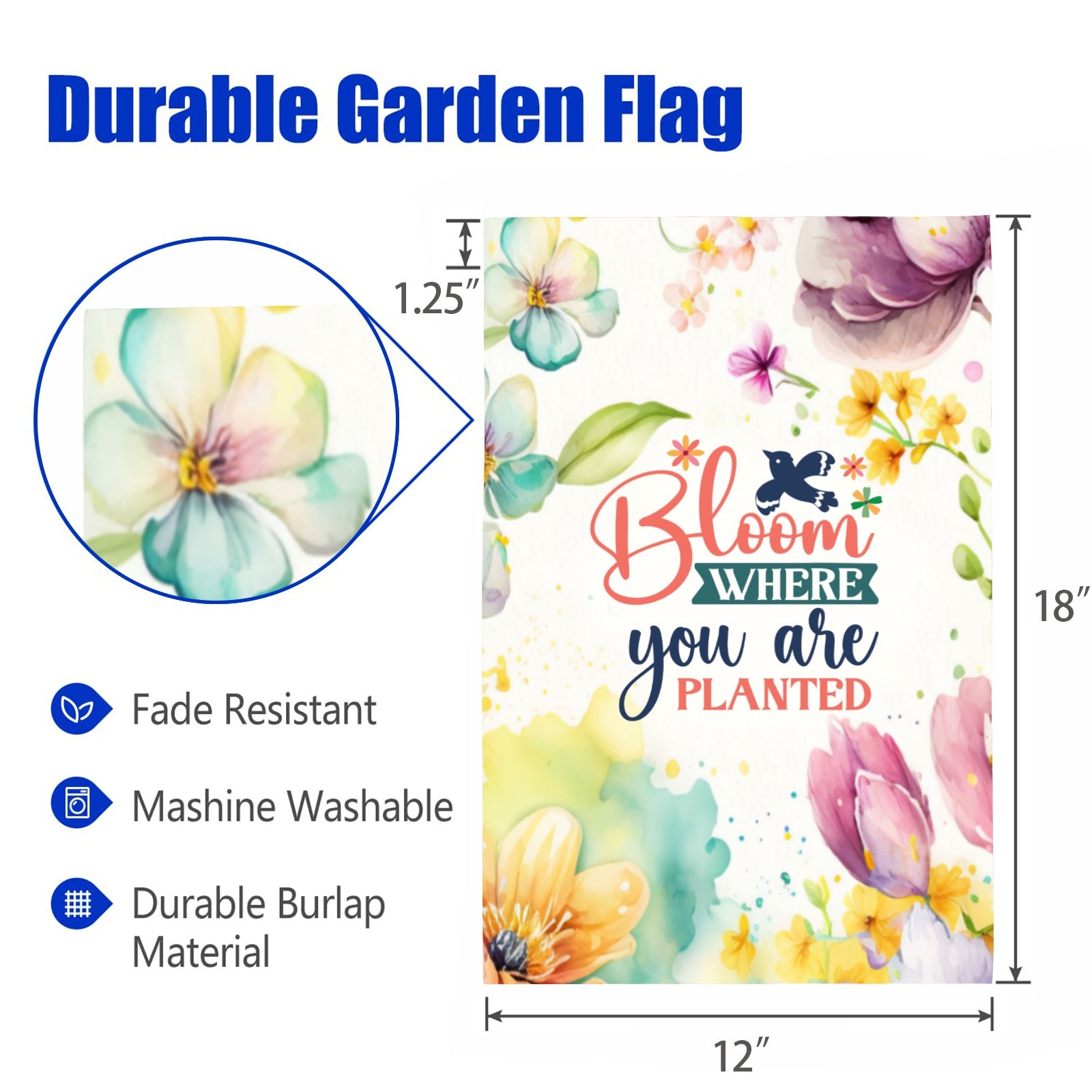 Garden Flag Bloom where youre planted 2 sided Linen Garden Flag 12''x18''