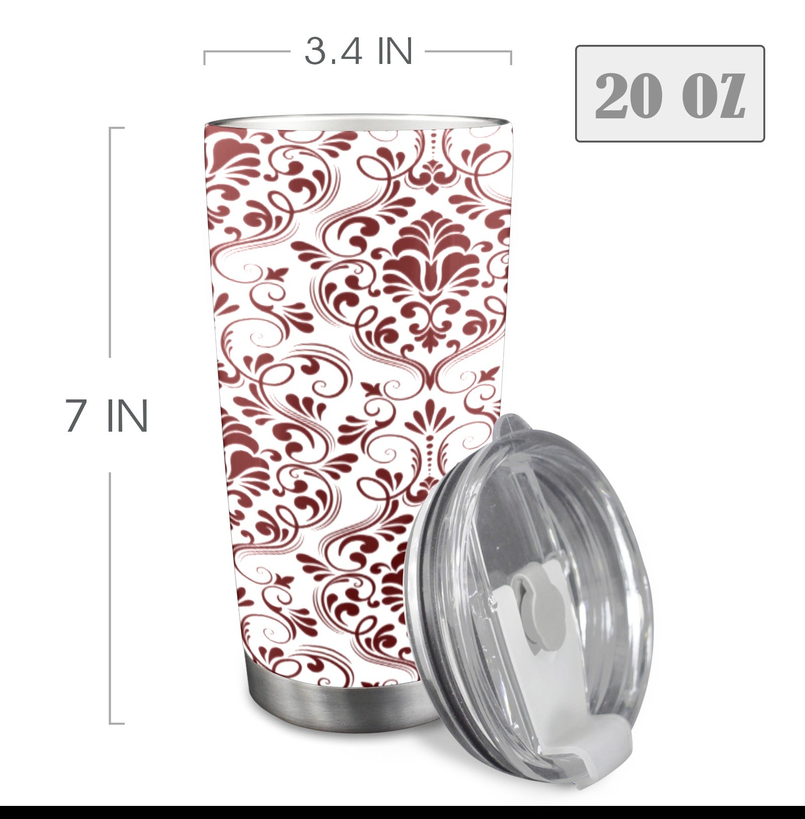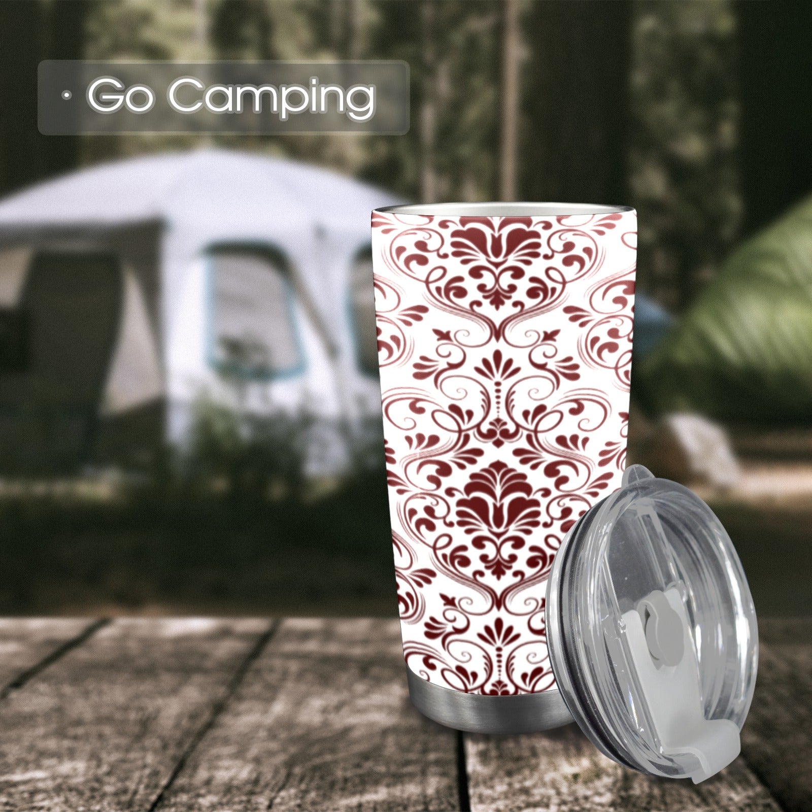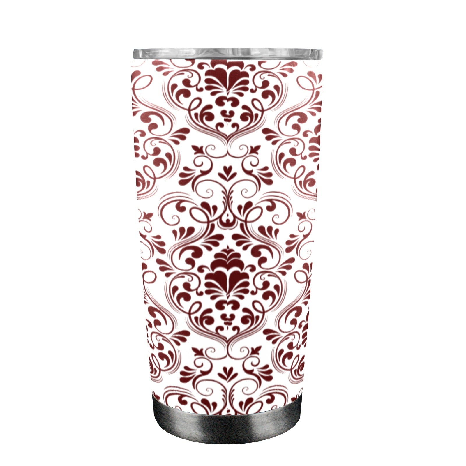 Garnet-maroon seamless-DamaskPattern 20oz Mobile Tumbler with Clear Slide Lid