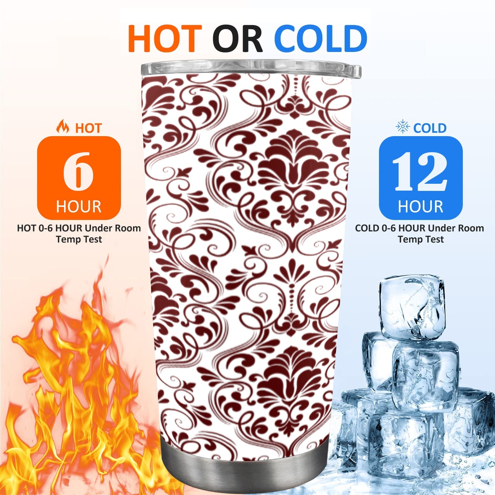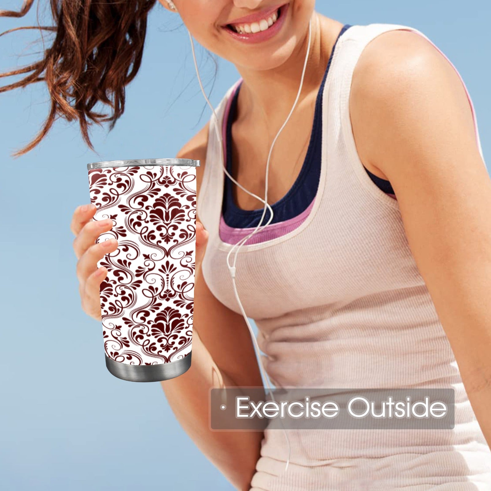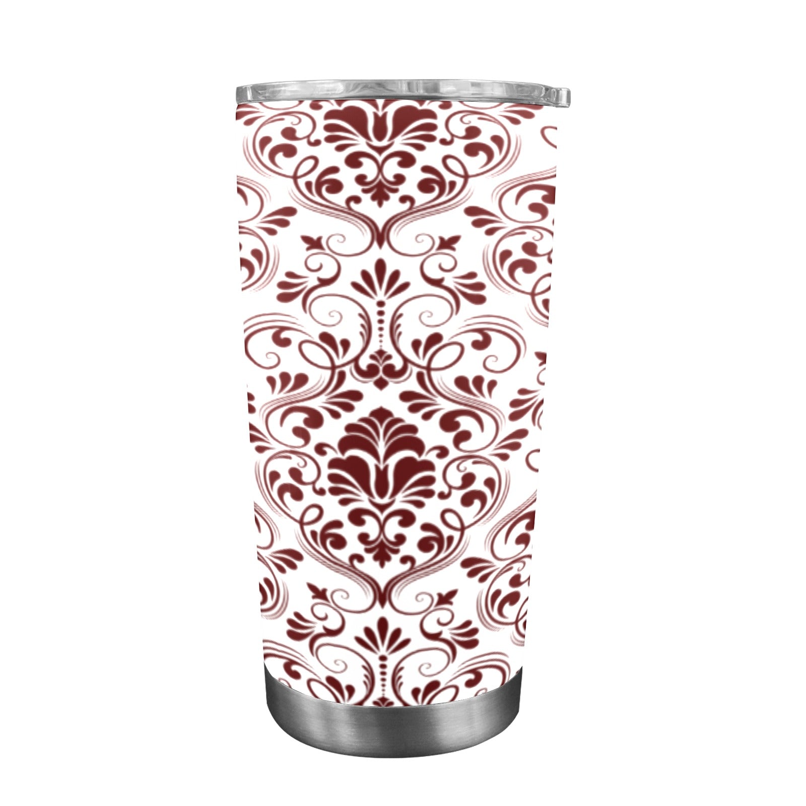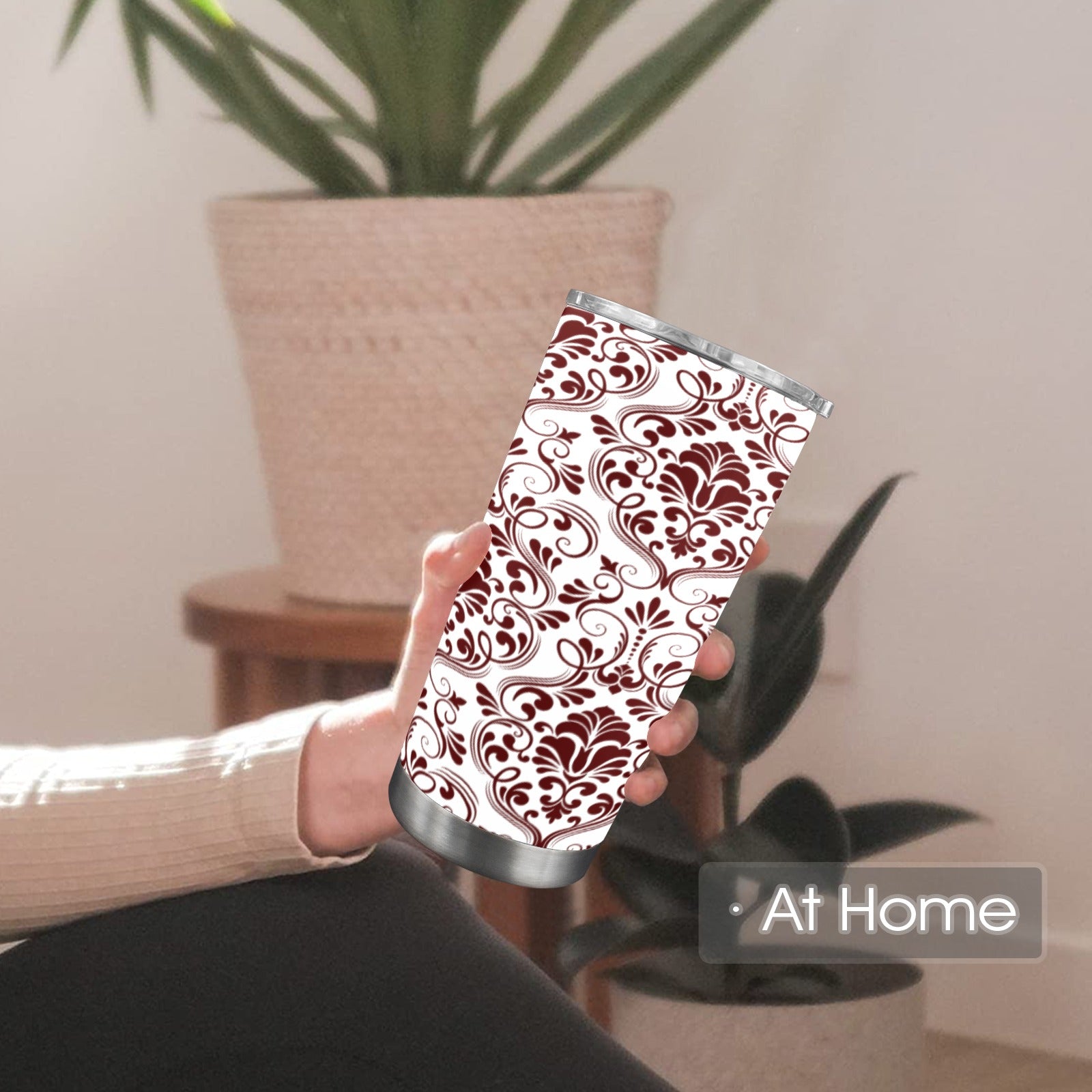Garnet-maroon seamless-DamaskPattern 20oz Mobile Tumbler with Clear Slide Lid