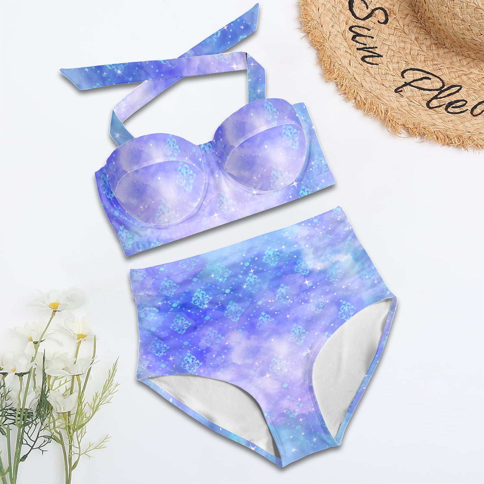 MoonlightSerenade womens 2piece swimwear Women's Halter Neck Gather Chest Bikini Swimsuit