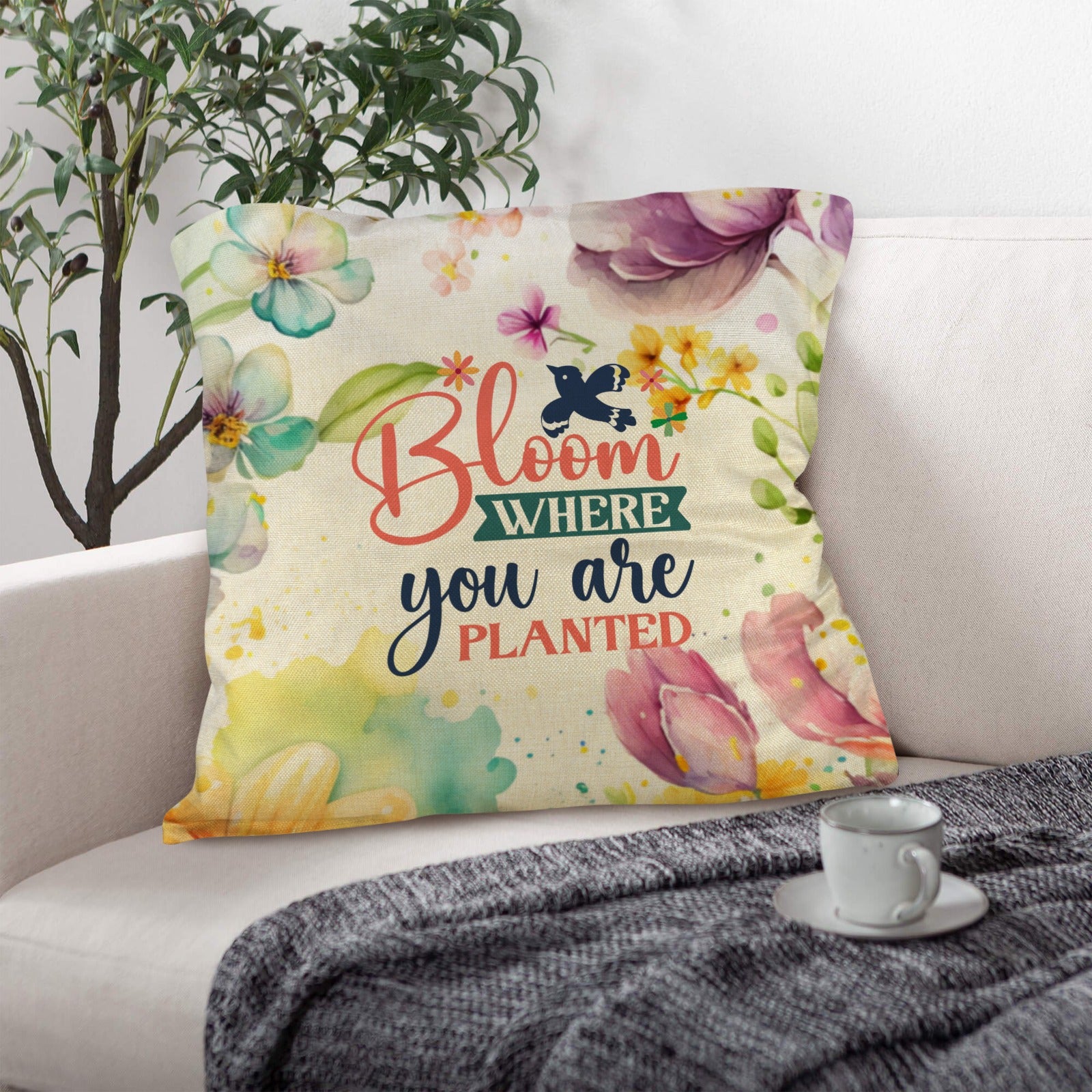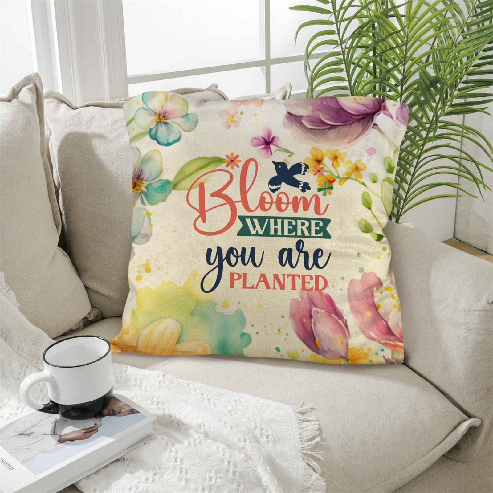 Spring Flowers Blloom where you are planted pillow Linen Pillow Case 18"x18" (One Side)