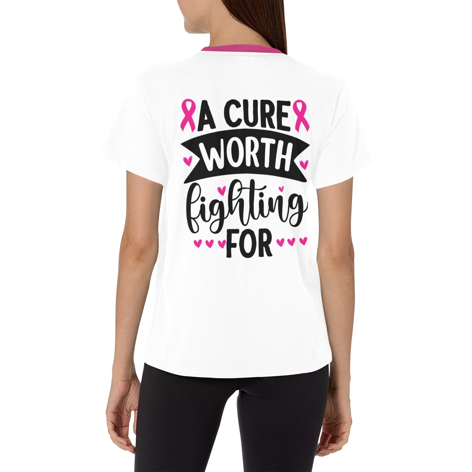 A cure worth fighting for breast cancer awareness womens t-shirt Women's All Over Print Crew Neck T-Shirt (Model T40-2)